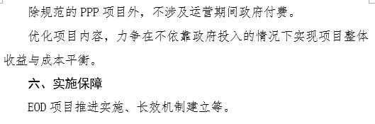 3、除規(guī)范的PPP項目外,不涉及運營期間政府付費,不以土地出讓收益、稅收、預期新增財政收入等返還補助作為項目收益。加強重大項目謀劃,優(yōu)化項目建設內容,力爭在不依靠政府投入的情況下實現(xiàn)項目整體收益與成本平衡。