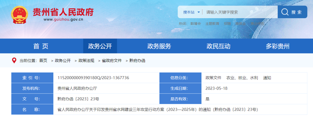 貴州省人民政府辦公廳關(guān)于印發(fā)貴州省水網(wǎng)建設(shè)三年攻堅(jiān)行動(dòng)方案(2023—2025年)的通知